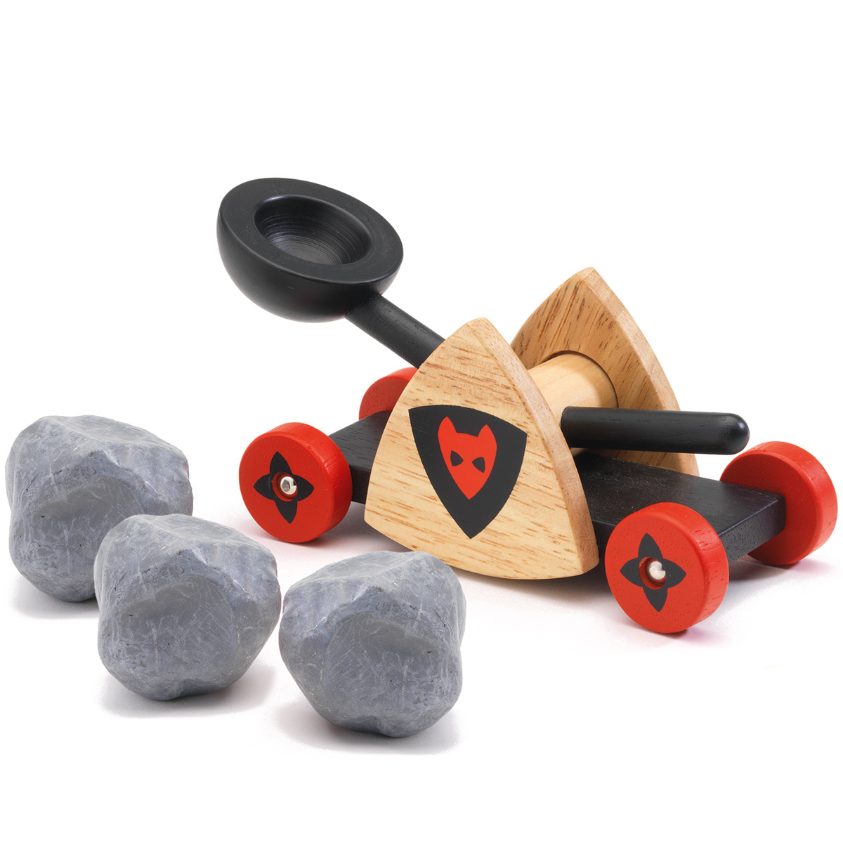 De katapult is onontbeerlijk als je het gevecht tegen de vijand wilt winnen! De houten katapult schiet stenen van kunststof af. Gelukkig is 'Baldy', de ridder erbij om de katapult te bedienen! De armen en benen van de ridder kunnen bewogen worden.